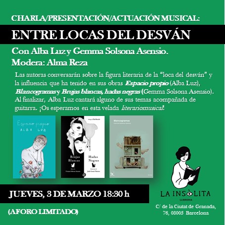 Conversatorio con Gemma Solsona y Alba Luz sobre la figura literaria de la Loca del desván en la Librería La Insólita de Barcelona