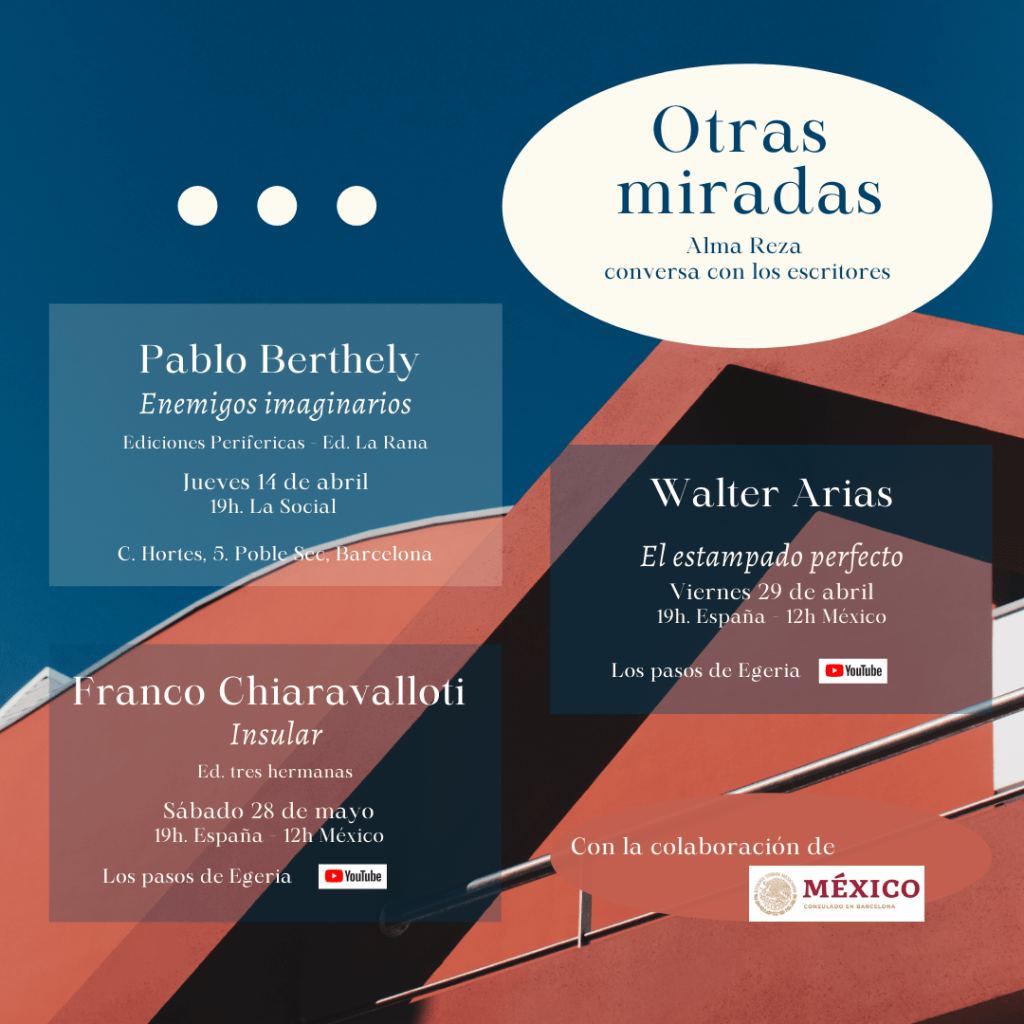 29 de abril, 2022 19h España – 12h MĂ©xico. Conversatorio con Walter Arias sobre su novela El estampado perfecto – TransmisiĂ³n por el canal youtube Los pasos de Egeria