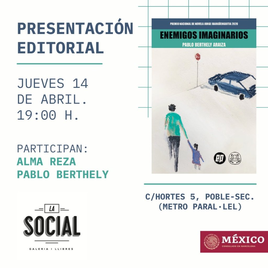 14 de abril, 2022. 19h España. Conversatorio con Pablo Berthely sobre su novela Enemigos Imaginarios (Ediciones PerifĂ©ricas). LibrerĂa La Social, Carrer Hortes, 5, Barcelona