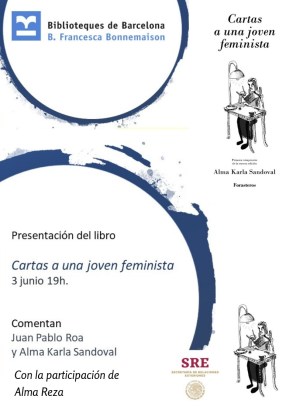 - 3 de junio Presentación de Cartas a una feminista de Alma Karla Sandoval (profesora del Tecnológico de Monterrey) Biblioteca Francesca Bonnemaison. 19h